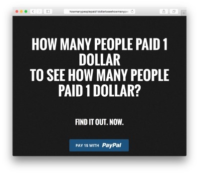 Yep, that’s it. You pay a dollar just to see how many other suckers people have paid a dollar to see how many people have paid a dollar to see how many people…and so on, until you’ve made a million. Bloody genius.