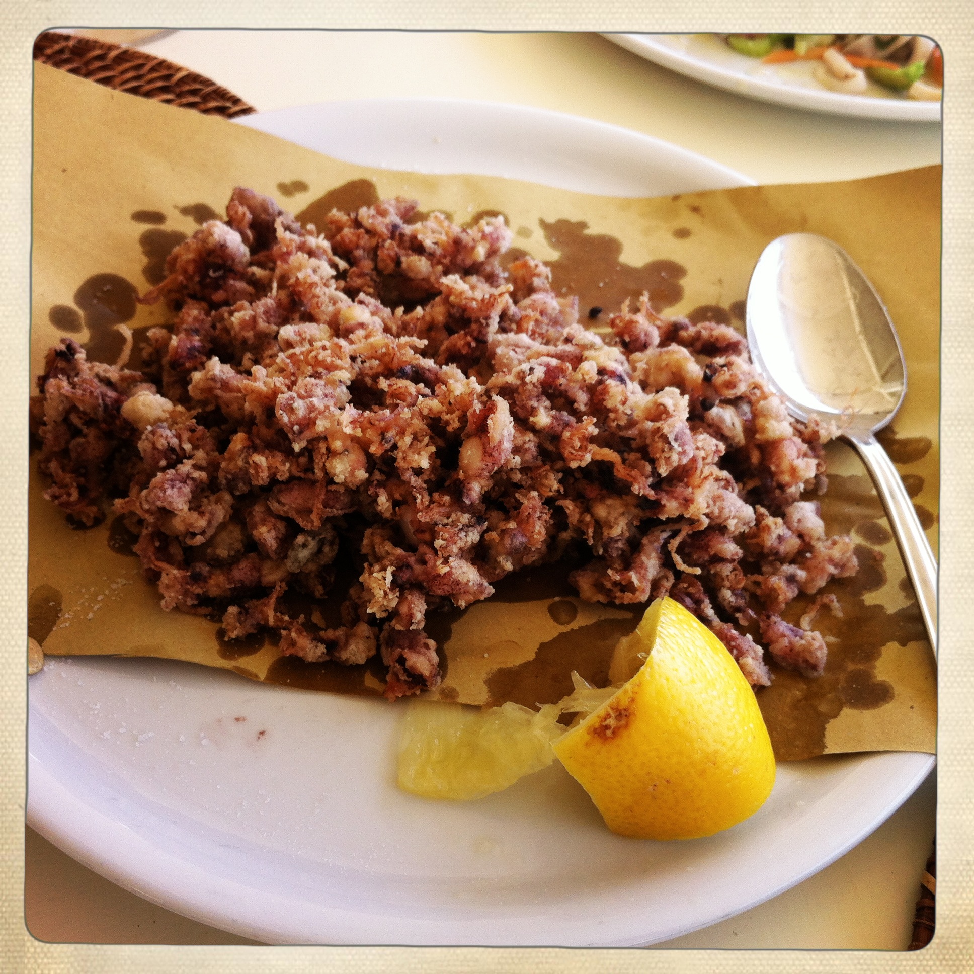fried octopus          beer glasses at beach